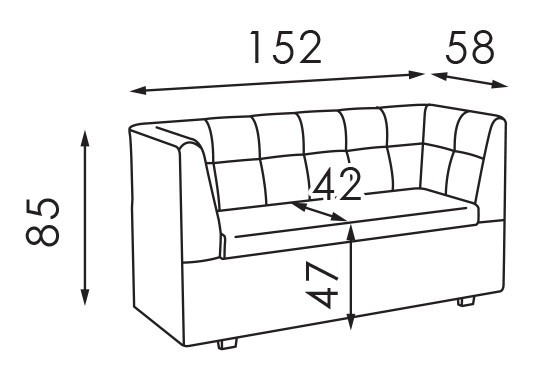 РАЗМЕРЫ дивана "КОМО 1.5": Длина - 152 см.