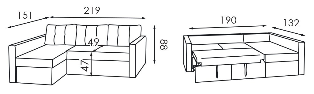 РАЗМЕРЫ углового дивана "ЛОРД":