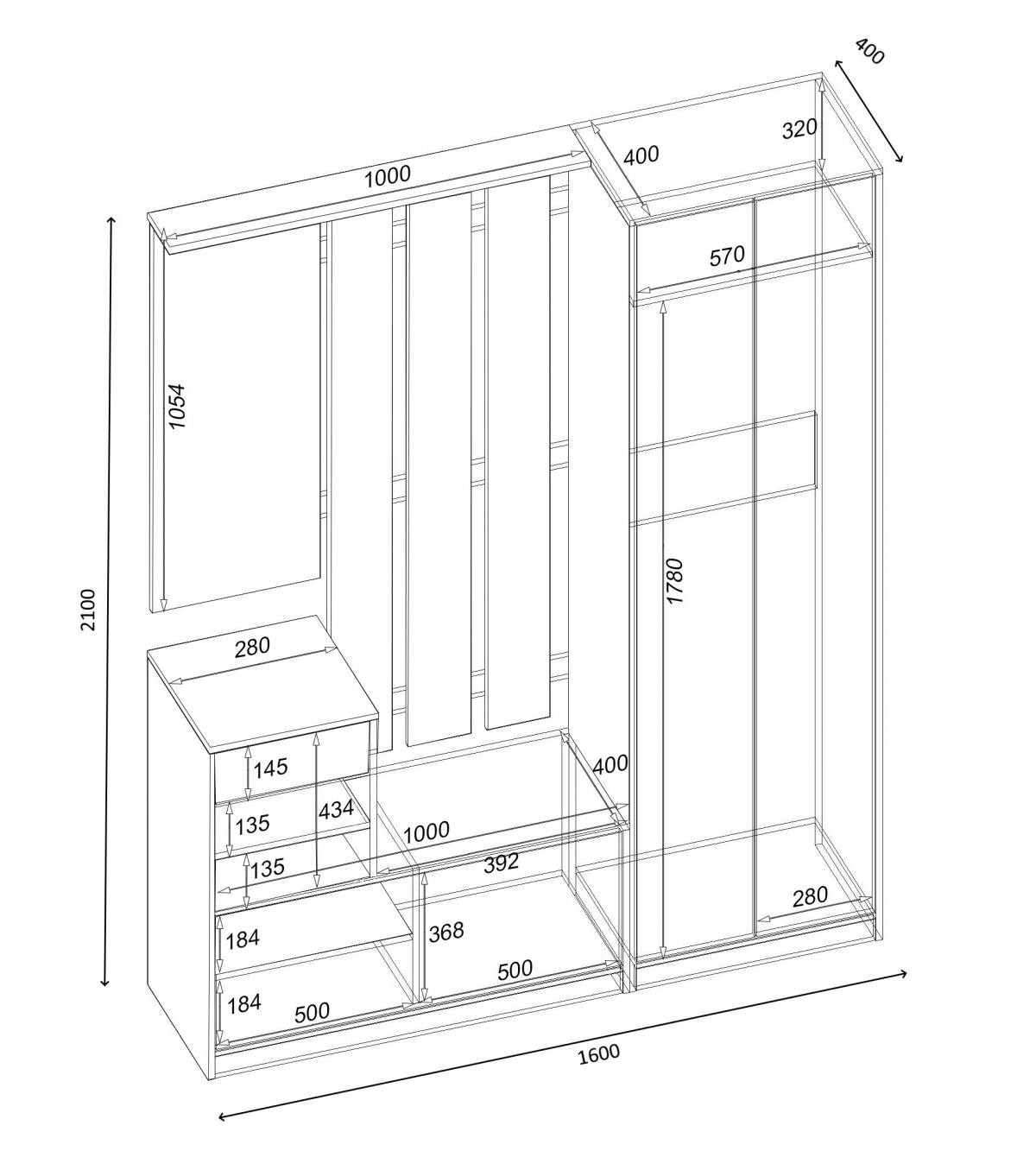 Прихожая состоит с трех модулей: