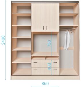 Вы можете самостоятельно компоновать как наполнение так и фасады вашого шкафа-купе.