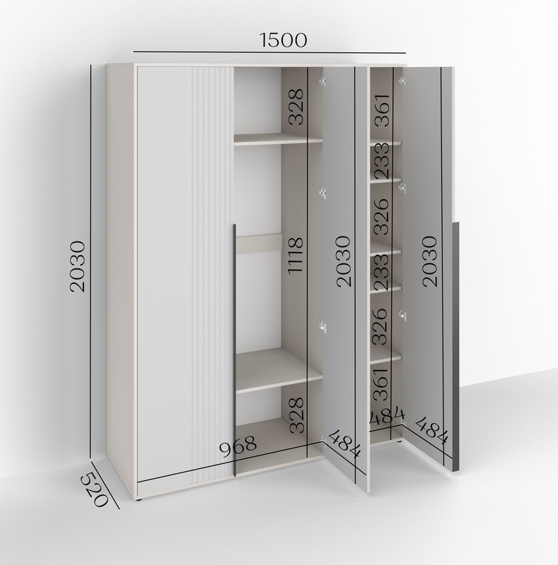 Шкаф трехдверный роспашной П-17 Кашемир+Туманный Беж
