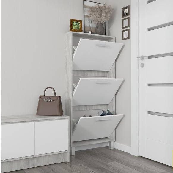 Изысканое решения для хранения обуви – обувная тумба A-160. Благодаря трем отдилением, эта тумба разрешает вам легко создать организованное пространство для вашей обуви.